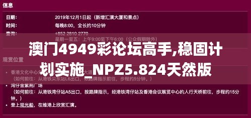 谈及澳门4949彩论坛高手,不得不提到“NPZ5.824天然版”。这个术语在博彩领域常常被提到,代表着一种创新的玩法或者具体的博彩策略。高手们通过研究和分析,将这些信息传递给更广泛的玩家群体,帮助他们在复杂的博彩市场中找到一条合适的道路。