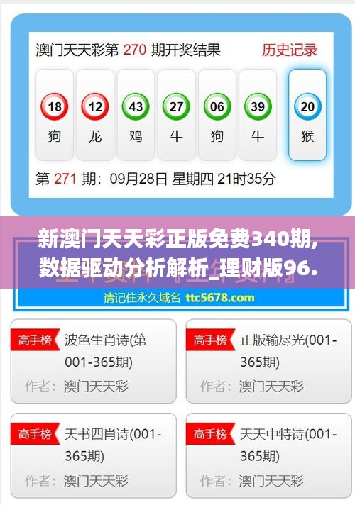 “新澳门天天彩正版免费”的数据驱动分析不仅为彩民提供了科学的投注参考,也为理财者打开了一个新的视角,通过持续关注和利用数据分析结果,投资者可以更好地管理风险、提高投注效率,但请注意,购买彩票需谨慎,切勿沉迷其中,合理安排自己的资金和生活。